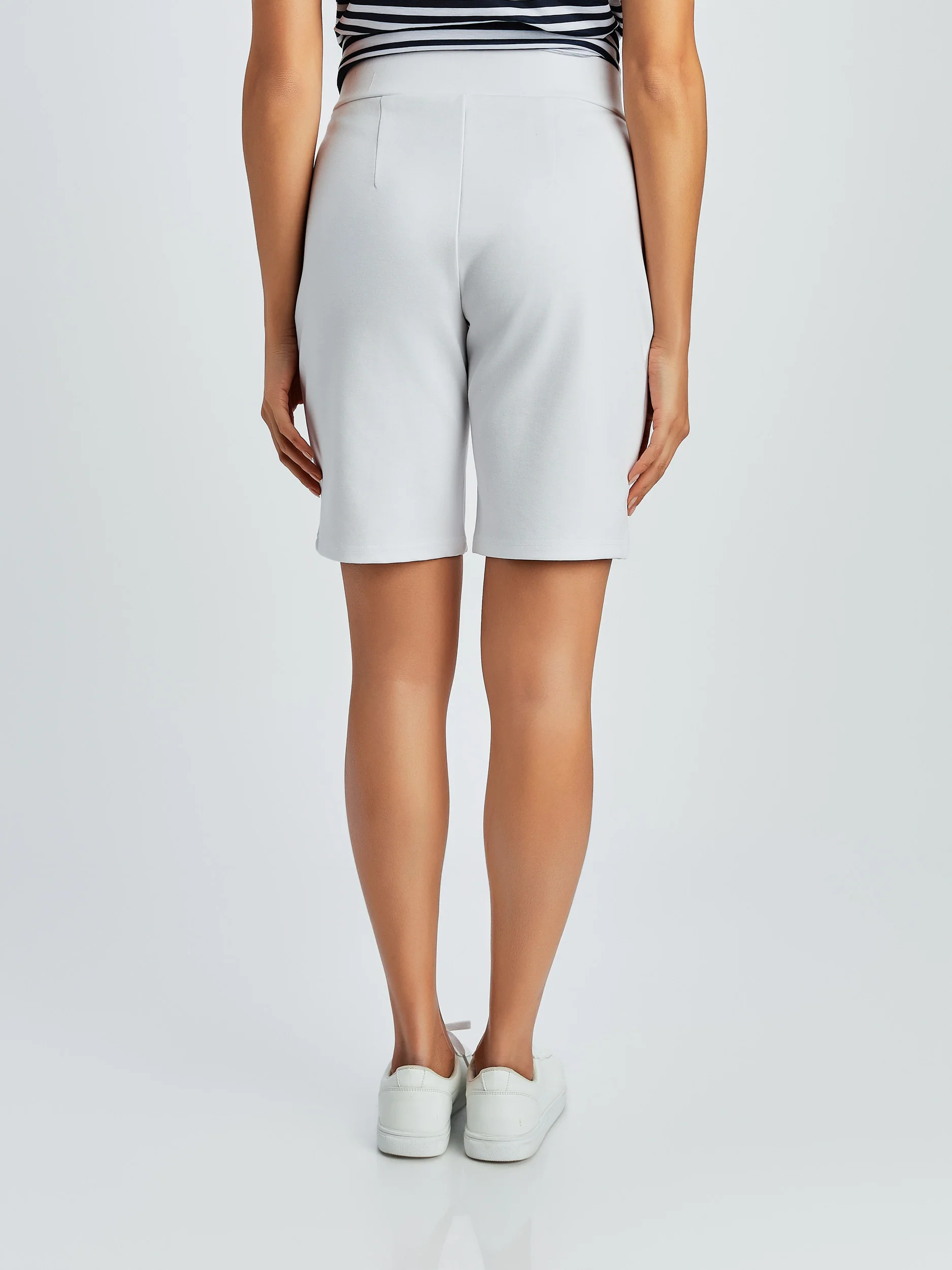 Bermuda polyvalent doté de deux poches avant , d'une fausse braguette et d'un accent de bouton.