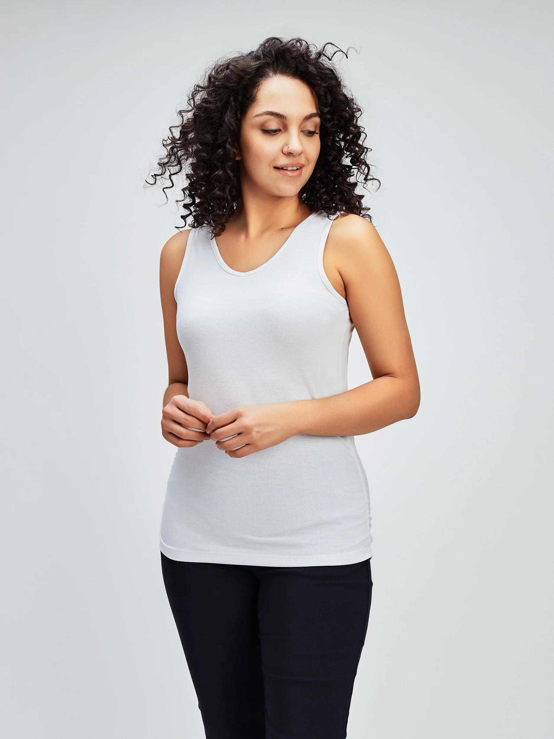 Cette camisole semi-ajustée est dotée de larges bretelles, choisissez parmi trois teintes neutres pour créer un basique confortable et facile à associer à tout.