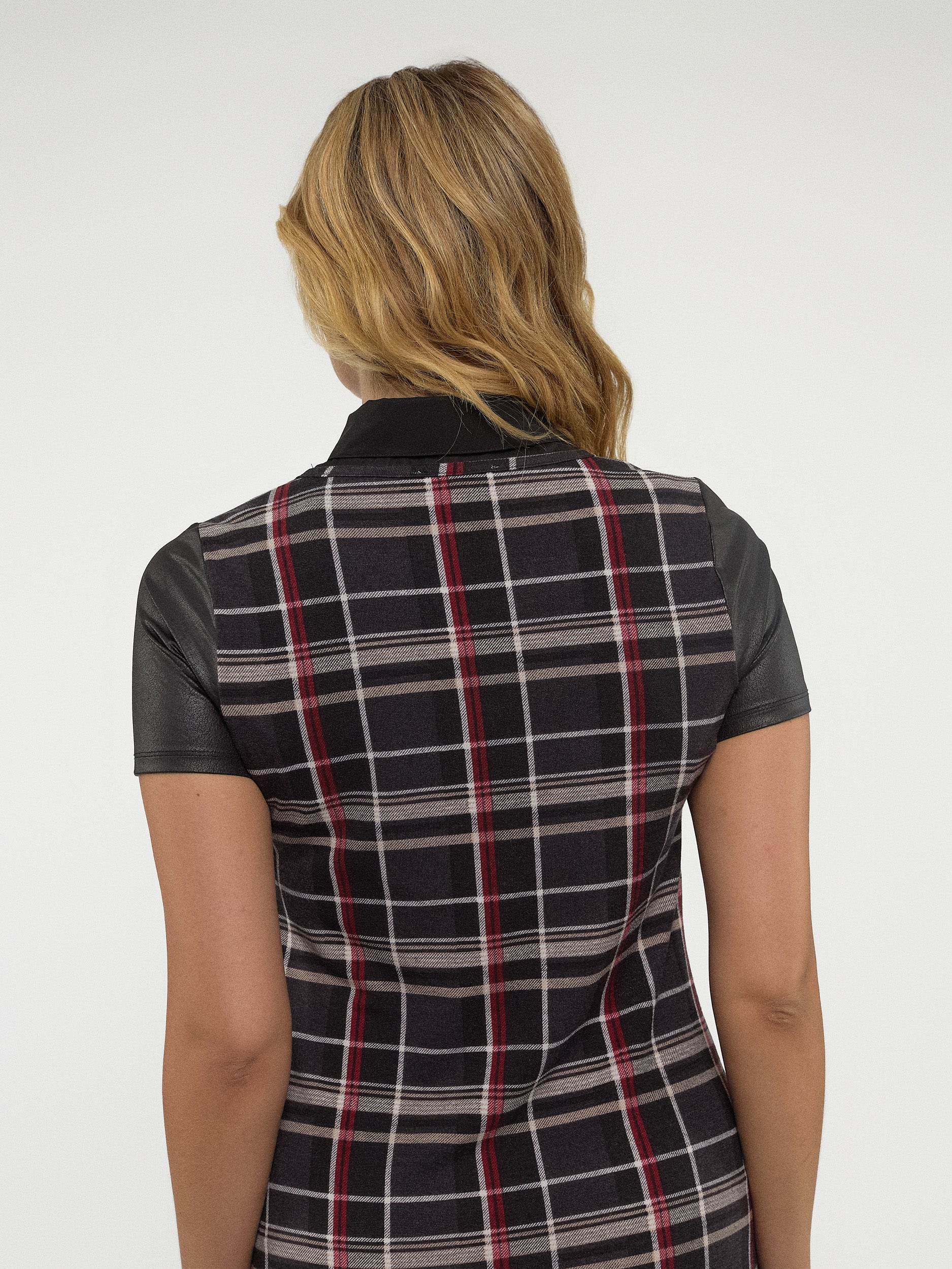 Robe dans un tissu à carreaux avec une coupe droite au-dessus du genou et des bretelles larges.
