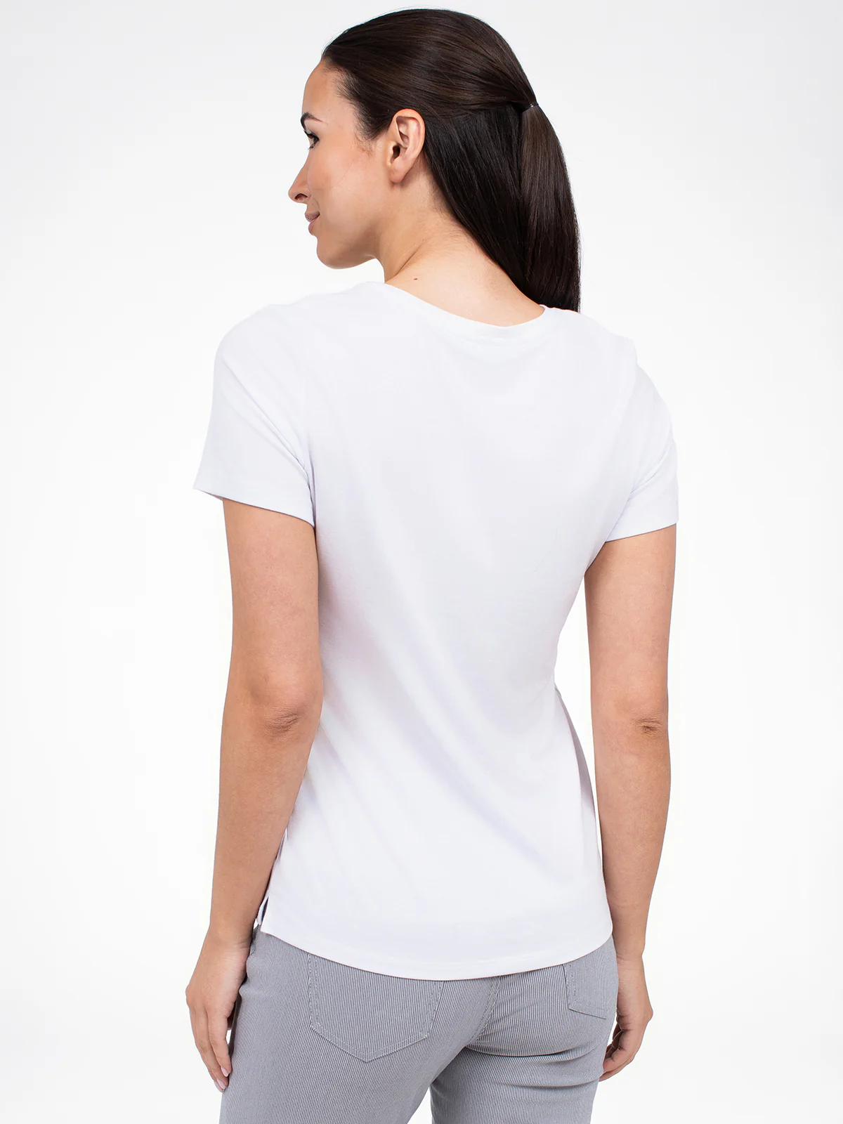 Ce t-shirt en matière extensible offre une coupe semi-ajustée et une encolure ronde pour une allure épurée. Ses manches cape et sa longueur aux hanches assurent un tombé fluide et agréable à porter au quotidien.