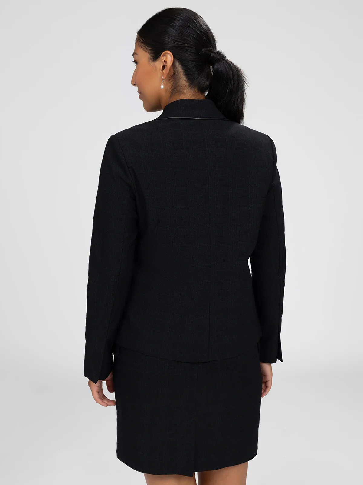 Veste à manches longues avec col chemise et fermeture à boutons sur le devant. Deux poches zippées sont placées à la taille.